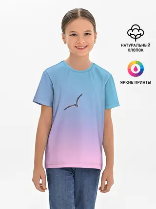 Детская базовая футболка / чайки птицы полет градиент