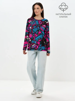 Лонгслив женский. Хлопок / Мультяшные кислотные картинки