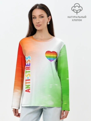 Лонгслив женский. Хлопок / Pop It Anti Stress - Heart - Fire