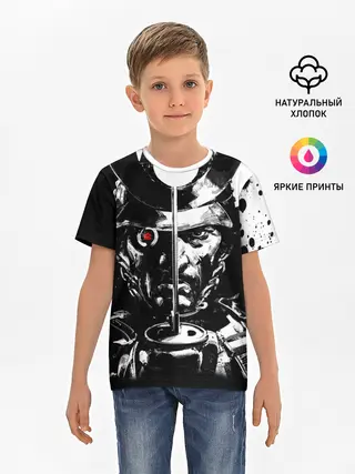 Детская базовая футболка / Самурай | ЧБ | Лого
