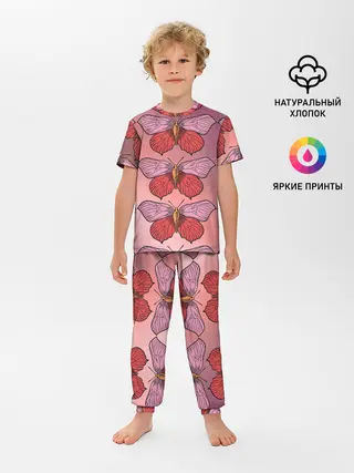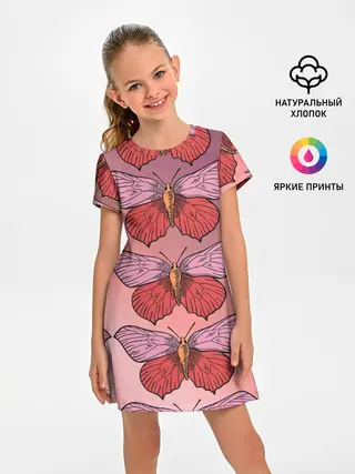 Мужская футболка оверсайз / Розовый принт с бабочками