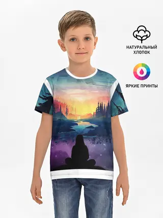 Детская базовая футболка / ПЕЙЗАЖ НАД ЗВЕЗДАМИ