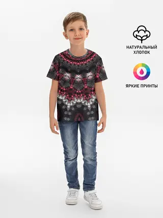Детская базовая футболка / Красно-черный мозаичный узор