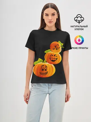 Женская базовая футболка / Хэллоуин смешные тыквы