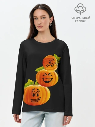 Лонгслив женский. Хлопок / Хэллоуин смешные тыквы