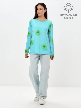 Лонгслив женский. Хлопок / Зеленые Цветочки