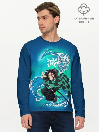 Мужской лонгслив базовый / Тандзиро Камадо с мечом