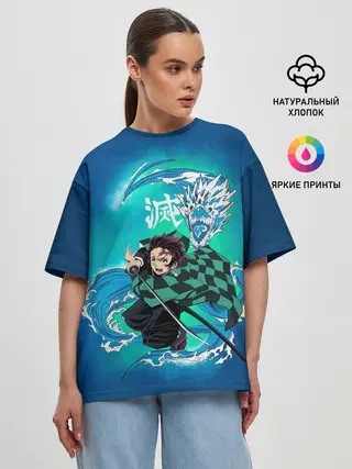 Женская футболка оверсайз / Тандзиро Камадо с мечом