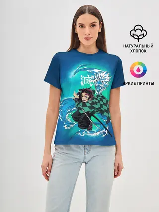 Женская базовая футболка / Тандзиро Камадо с мечом