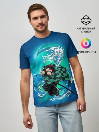 Мужская базовая футболка / Тандзиро Камадо с мечом