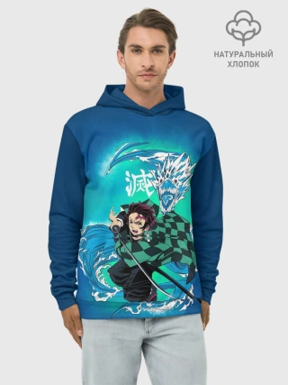 Худи мужской база хлопок / Тандзиро Камадо с мечом