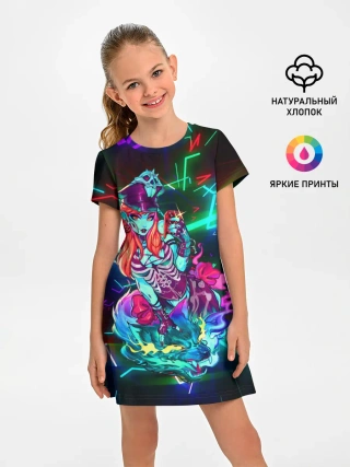 Женская футболка оверсайз / Неоновая ведьма с волком