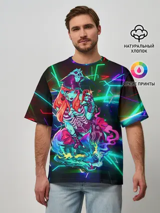 Мужская футболка оверсайз / Неоновая ведьма с волком