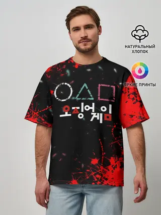 Мужская футболка оверсайз / Игра в кальмара брызги крови