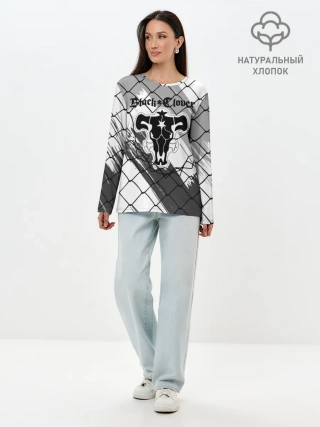 Лонгслив женский. Хлопок / Чёрный клевер бык за решеткой.