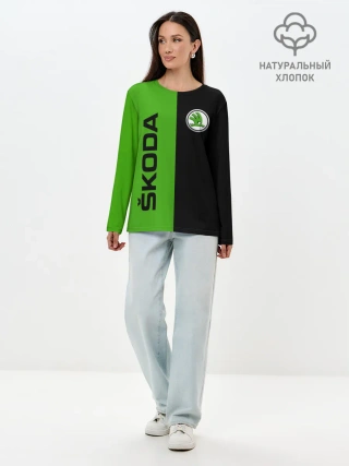 Лонгслив женский. Хлопок / SKODA черно-зеленый
