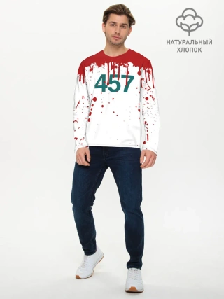 Мужской лонгслив базовый / ИГРА В КАЛЬМАРА ПЕРСОНАЖ 457 КРОВЬ