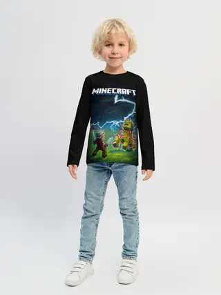 Детский лонгслив / Бой Стива с Крипером под ударом молнии