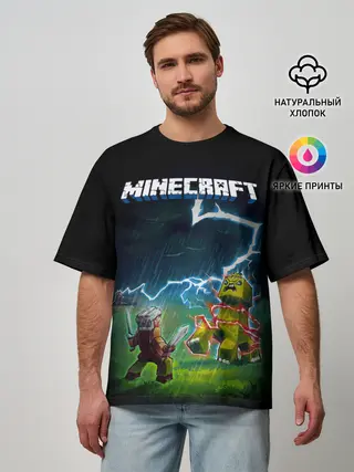 Мужская футболка оверсайз / Бой Стива с Крипером под ударом молнии