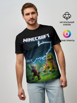 Мужская базовая футболка / Бой Стива с Крипером под ударом молнии
