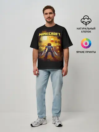 Мужская футболка оверсайз / Стив против огненных Гаст | Minecraft