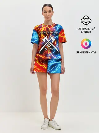 Женская футболка оверсайз / NEW WORLD / НЬЮ ВОРЛД / МОЛНИИ