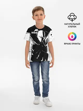 Детская базовая футболка / Черно-белый Сайтама One Punch-Man