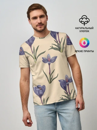 Мужская базовая футболка / Цветы шафрана на бежевом фоне