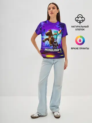 Женская базовая футболка / Minecraft на коне!