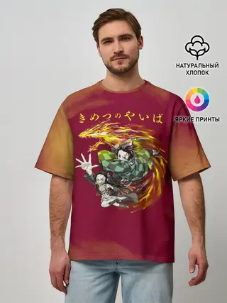 Мужская футболка оверсайз / Танджиро и Незуко Камадо
