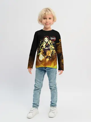Мужской лонгслив базовый / Танджиро Камадо в огне