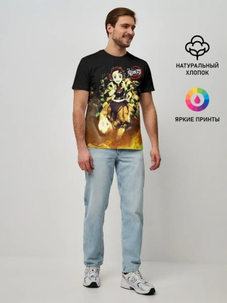 Мужская футболка оверсайз / Танджиро Камадо в огне