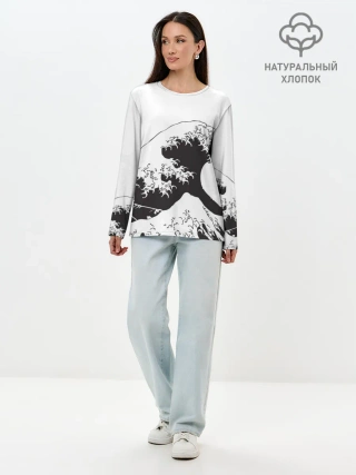 Лонгслив женский. Хлопок / Волна Канагава Япония | Sea Wave