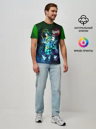 Мужская базовая футболка / Гию и Танджиро Kimetsu no Yaiba