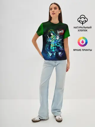 Женская базовая футболка / Гию и Танджиро Kimetsu no Yaiba