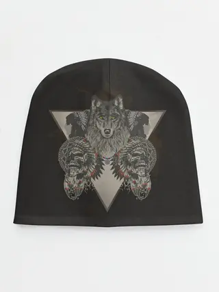 Худи мужской база хлопок / Волк, черепа и индейцы