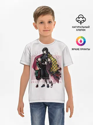 Детская базовая футболка / Гию оберегает Танджиро и Незуко