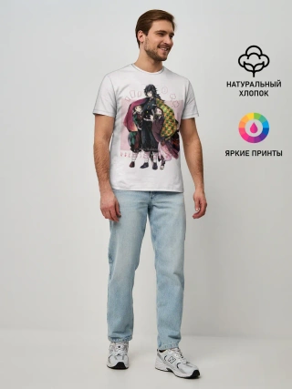 Мужская базовая футболка / Гию оберегает Танджиро и Незуко
