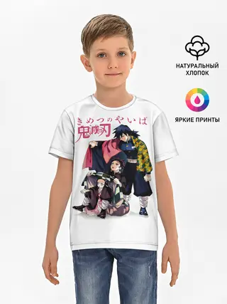 Детская базовая футболка / Танджиро и Незуко под укрытием Гию