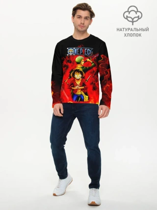 Мужской лонгслив базовый / Зоро и Луффи в огне One Piece