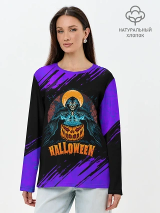 Лонгслив женский. Хлопок / ВЕДЬМА КОЛДУЕТ НАД ТЫКВОЙ