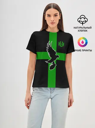 Женская базовая футболка / Hollywood Undead заеленный крест
