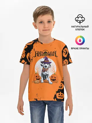 Детская базовая футболка / Далматинец в шляпе | Хэллоуин
