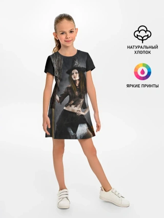 Мужская футболка оверсайз / Милая ведьма с метлой
