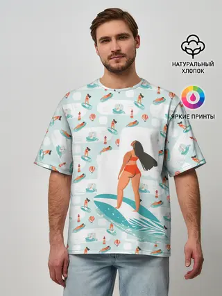 Мужская футболка оверсайз / Серфингистка
