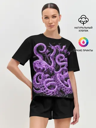 Женская футболка оверсайз / Фиолетовый Кракен