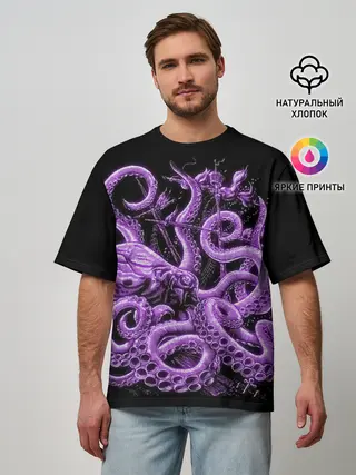 Мужская футболка оверсайз / Фиолетовый Кракен