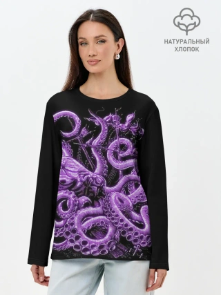 Лонгслив женский. Хлопок / Фиолетовый Кракен