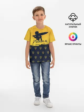 Детская базовая футболка / Чёрный клевер Аста желтый