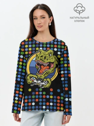 Лонгслив женский. Хлопок / Динозавр-игрок